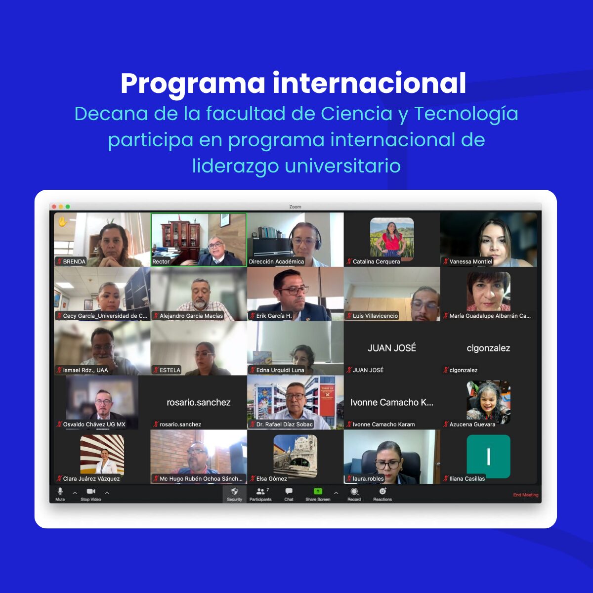 La Maestra Azucena Guevara, Decana de la Facultad de Ciencia y Tecnología de la Universidad Gerardo Barrios (UGB), participó recientemente en el curso IGLU (Instituto de Gestión y Liderazgo Universitario), organizado por la Organización Universitaria Interamericana (OUI) bajo el lema “Capacitando cuadros directivos para la transformación de las IES”.
